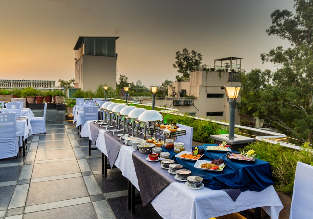 Elevate your dining experience at the Mumtaj Table in our rooftop restaurant, where panoramic views of the Taj Mahal create a romantic backdrop. Named after the legendary Mumtaj Mahal, this exclusive seating area combines culinary excellence with the allure of an iconic monument, promising an enchanting and unforgettable meal.
